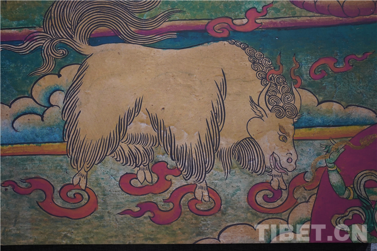 牦牛走進了藏族人民的生活,在幾千年的相處中,牦牛升華成任何一種事物和元素,完美融入了壁畫、唐卡、建筑等多種藝術創(chuàng)作中。