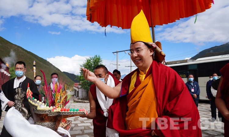 圖為十一世班禪在僧眾引領(lǐng)下走進(jìn)熱堆寺 攝影:王淑