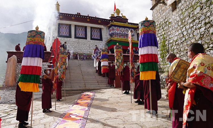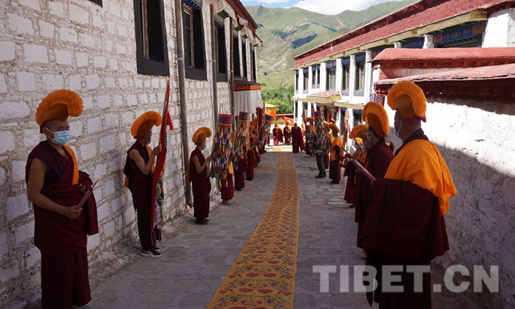 圖為8月5日,曲水縣熱堆寺僧眾列隊(duì)迎接十一世班禪的到來(lái) 攝影:王淑