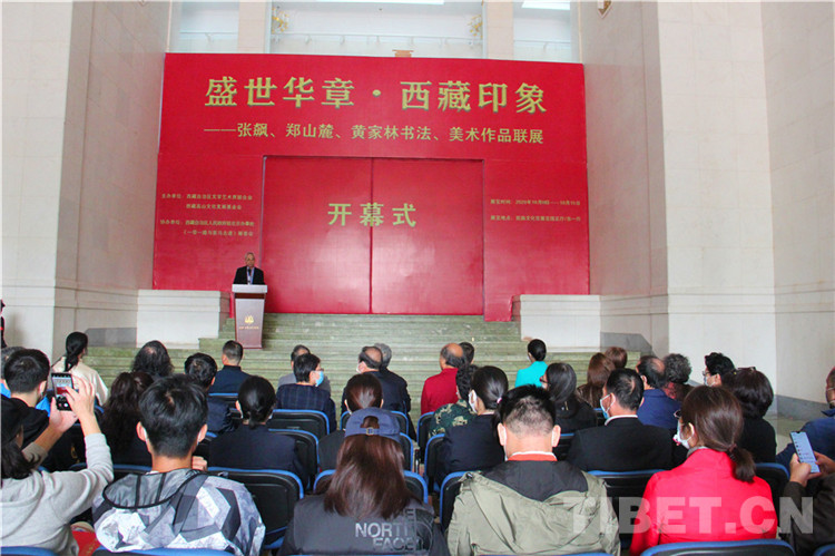 中國(guó)西藏網(wǎng)訊 10月10日,“盛世華章?西藏印象——張飆、鄭山麓、黃家林書法、美術(shù)作品聯(lián)展”于北京民族文化宮開幕。來自中國(guó)書法家協(xié)會(huì)、中國(guó)美術(shù)家協(xié)會(huì)、西藏自治區(qū)文學(xué)藝術(shù)界聯(lián)合會(huì)等單位的嘉賓及藝術(shù)家50余人出席開幕式并參觀展覽。