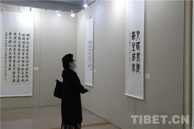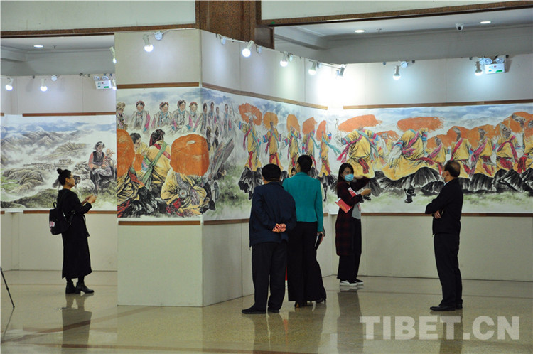 本次展覽由西藏自治區(qū)文學(xué)藝術(shù)界聯(lián)合會(huì)、西藏高山文化發(fā)展基金會(huì)主辦,西藏自治區(qū)人民政府駐北京辦事處和《一帶一路與茶馬古道》籌委會(huì)協(xié)辦,由張飆、鄭山麓、黃家林三位藝術(shù)家聯(lián)袂,以書法、詩(shī)詞、繪畫的藝術(shù)形式展現(xiàn)了在黨中央堅(jiān)強(qiáng)領(lǐng)導(dǎo)下,西藏自治區(qū)取得的巨大成就,以及西藏自治區(qū)各族人民加強(qiáng)民族團(tuán)結(jié)、建設(shè)美麗西藏的生動(dòng)實(shí)踐。同時(shí),本次展覽展品中還包括了記錄醫(yī)護(hù)工作者抗擊新冠肺炎疫情的優(yōu)秀作品。在上百件展品中,張飆創(chuàng)作的反映西藏自治區(qū)經(jīng)濟(jì)社會(huì)發(fā)展成就的詩(shī)詞、書法,鄭山麓創(chuàng)作的呈現(xiàn)西藏自治區(qū)舞蹈藝術(shù)魅力的60米國(guó)畫長(zhǎng)卷《甲諧舞吉祥之盛世歡歌》,以及黃家林以布達(dá)拉宮為主題創(chuàng)作的油畫作品是展覽的亮點(diǎn),吸引觀眾紛紛駐足。
