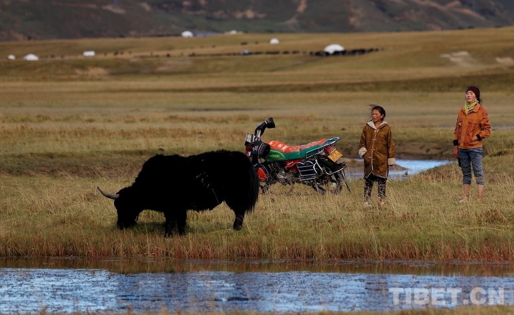中國西藏網(wǎng)訊 10月中旬,地處川西高原的四川省甘孜藏族自治州理塘縣高寒牧區(qū),牧場上的草已變黃,也是牦牛最肥壯的季節(jié)。近年來,理塘縣堅持“增草減牧、肥畜增收”的發(fā)展理念,有力推進了傳統(tǒng)畜牧業(yè)向現(xiàn)代草原畜牧業(yè)轉變提升,理塘牦牛、理塘牦牛肉已成為地理標志。圖為秋草黃牦牛肥景致(中國西藏網(wǎng) 通訊員/葉強平 陶軍)