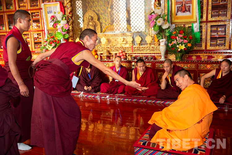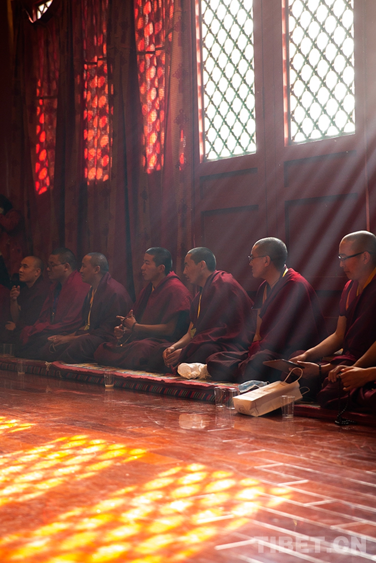 據(jù)了解,今年有來(lái)自格魯派、寧瑪派、苯波三個(gè)教派的32名學(xué)員申請(qǐng)“拓然巴”高級(jí)學(xué)銜,他們將在接下來(lái)的一周時(shí)間里,接受?chē)?yán)格的資格審查、辯經(jīng)考評(píng),及進(jìn)行論文答辯。