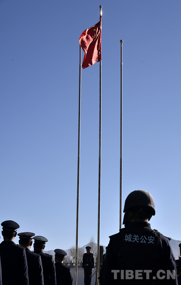 中國(guó)西藏網(wǎng)訊 伴隨著洪亮的國(guó)歌聲,一面五星紅旗冉冉升起。1月1日上午,西藏自治區(qū)拉薩市公安局城關(guān)公安分局納金派出所及轄區(qū)內(nèi)百余名群眾著盛裝齊聚一堂,舉行升國(guó)旗、慶元旦、喜迎“中國(guó)人民警察節(jié)”活動(dòng)。