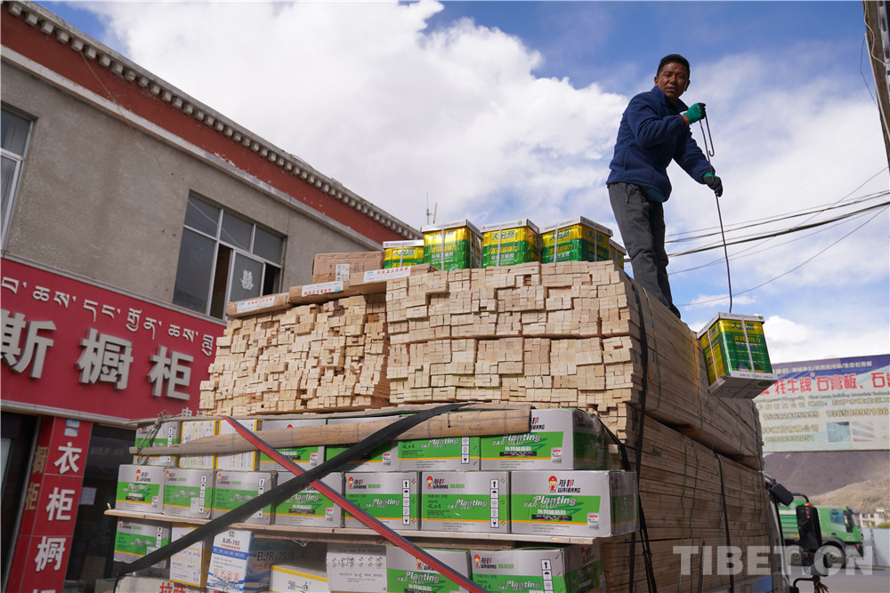 圖為尼瑪從車(chē)上卸貨中