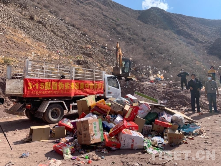 圖為統(tǒng)一無污染銷毀收繳的假冒偽劣商品