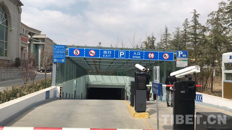 圖為拉薩市區(qū)一座停車場(chǎng)入口,左側(cè)張貼著農(nóng)牧民限時(shí)免費(fèi)停車標(biāo)識(shí)牌