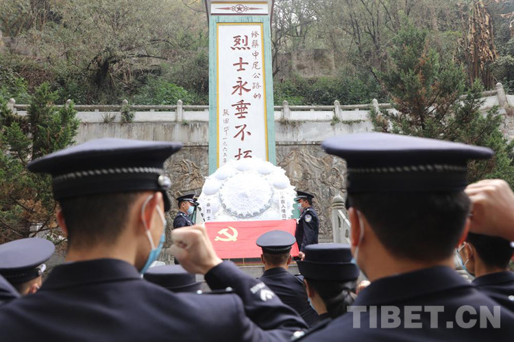 圖為西藏聶拉木出入境邊防檢查站民警到樟木烈士陵園開展清明節(jié)祭奠革命先烈活動 攝影:索朗次仁