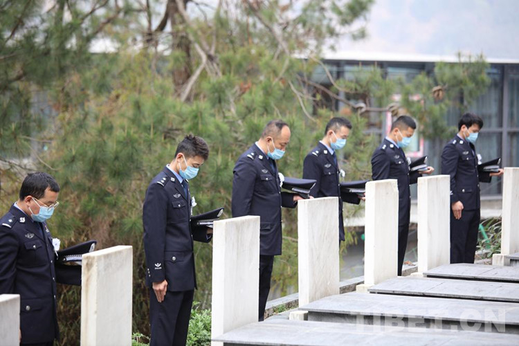 “因為我們友誼橋執(zhí)勤點處于疫情防控一線,我們沒有到烈士陵園實地打掃,今年的祭掃改為網(wǎng)絡祭掃,民警們通過國家公祭網(wǎng)祭掃通道開展‘追思歷史、忠誠履職’活動?!痹撜居颜x橋執(zhí)勤點黨支部副書記尼瑪云丹說。