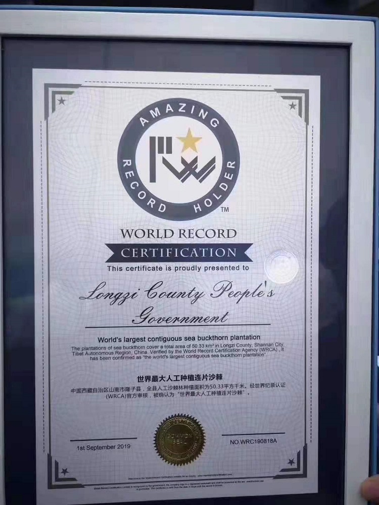 圖為2019年9月1日,山南市隆子縣的沙棘林被世界紀(jì)錄認(rèn)證機(jī)構(gòu)(WRCA)認(rèn)證為“世界最大人工種植連片沙棘”