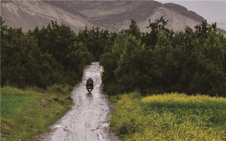 圖為護(hù)林員騎著摩托車(chē)巡邏護(hù)林
