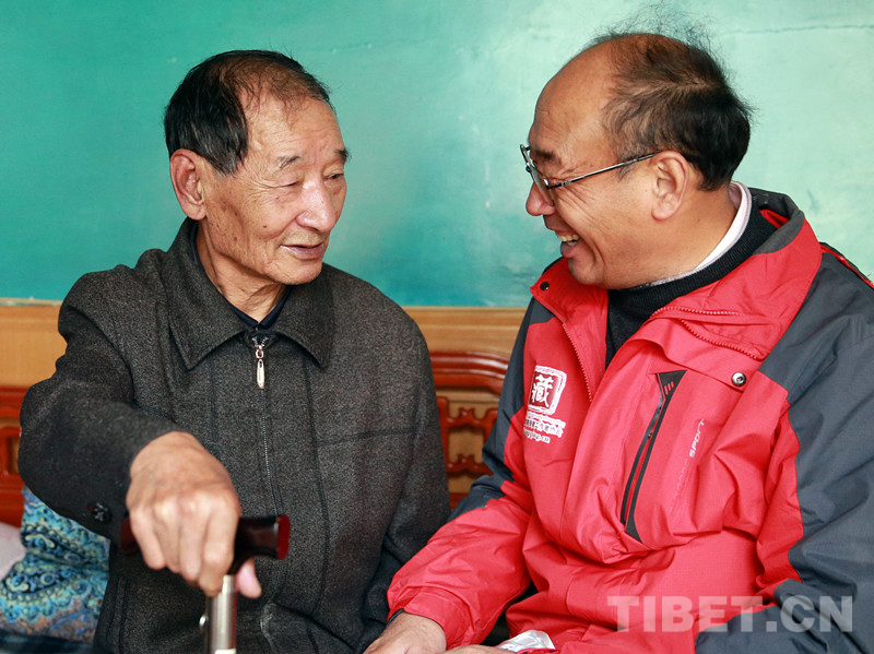 我和公覺扎朗已有30多年未謀面了。耄耋之年的公覺扎朗記憶力不好,腿腳也不靈活。他的老伴央金此時(shí)去尼瑪縣看望當(dāng)干部的女兒玉珍一家,只有保姆在家照顧他,于是我們手拉著手,斷斷續(xù)續(xù)地回憶起當(dāng)年的許多往事……