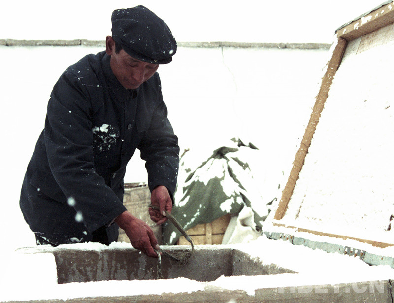 這是公覺扎朗在文部辦事處(現(xiàn)改為尼瑪縣)住地冒雪給家里打井水(唐召明1989年攝)