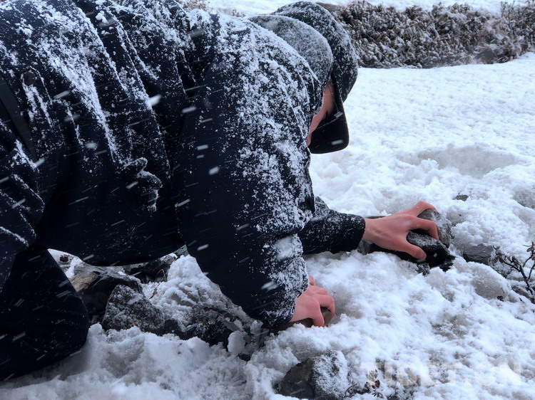 遮擋風雪的手
