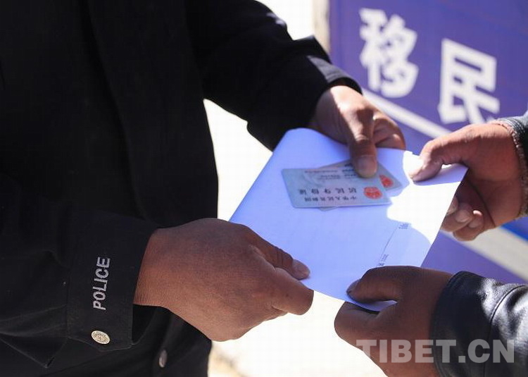 圖為民警為群眾辦理通行證