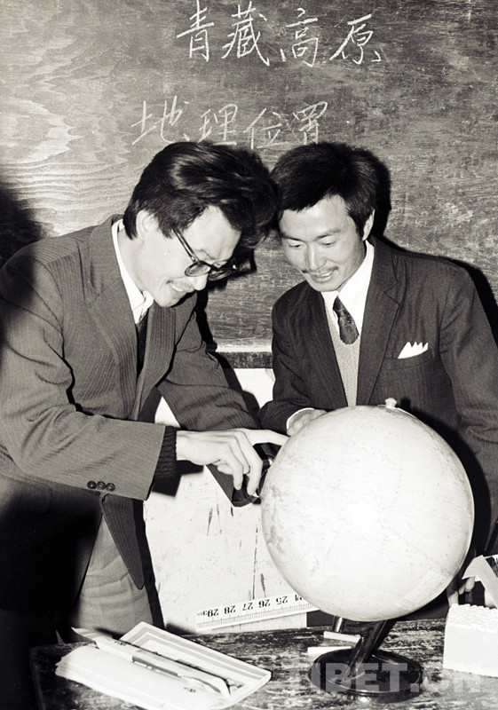 這是時任班戈縣中學(xué)校長胡蓉(右)和副校長駱正軍(左)在交流教學(xué)經(jīng)驗。兩人在1980年分別從湖南大學(xué)和湖南師范學(xué)院畢業(yè)后,來到班戈縣任教(唐召明1987年攝)