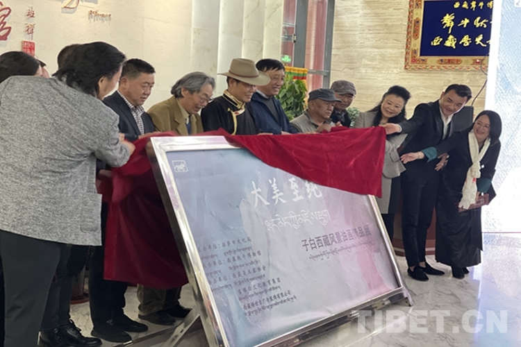 圖為“大美至純—子白西藏風景油畫精品展”揭幕儀式