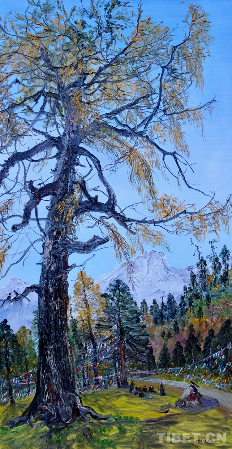 “展覽的油畫創(chuàng)作大多是在寫生現(xiàn)場完成的,她的藝術(shù)風格也清新生動。她以自己的寫生作品,令觀眾共享融入自然的至純大美,這是一種平易近人的審美方式?!眹乙患壝佬g(shù)師余有心評價說,子白特別善于畫樹,她的一幅幅佳作就是這些千年古樹的肖像,借審美而參悟自然生態(tài)的奧妙,帶觀眾領(lǐng)會高原生態(tài)文明之真諦。