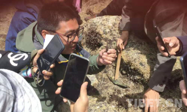 圖為周圍游客在拍挖到的蟲草 攝影;拉姆
