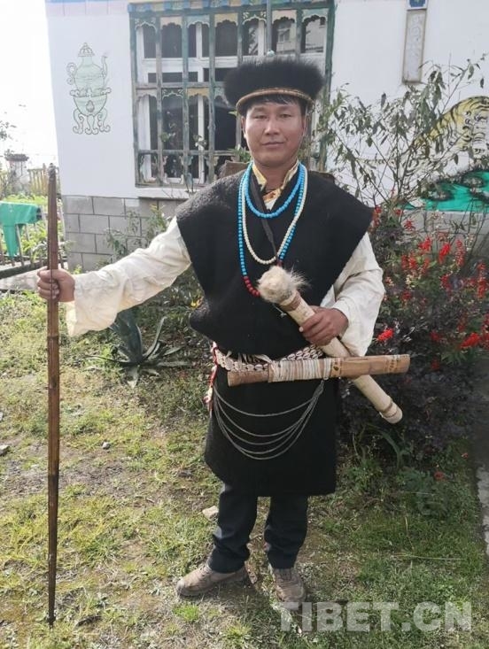 圖為西藏自治區(qū)林芝市墨脫縣達木珞巴民族鄉(xiāng)達木村村民羅布身著珞巴族傳統(tǒng)服飾 圖片由羅布提供