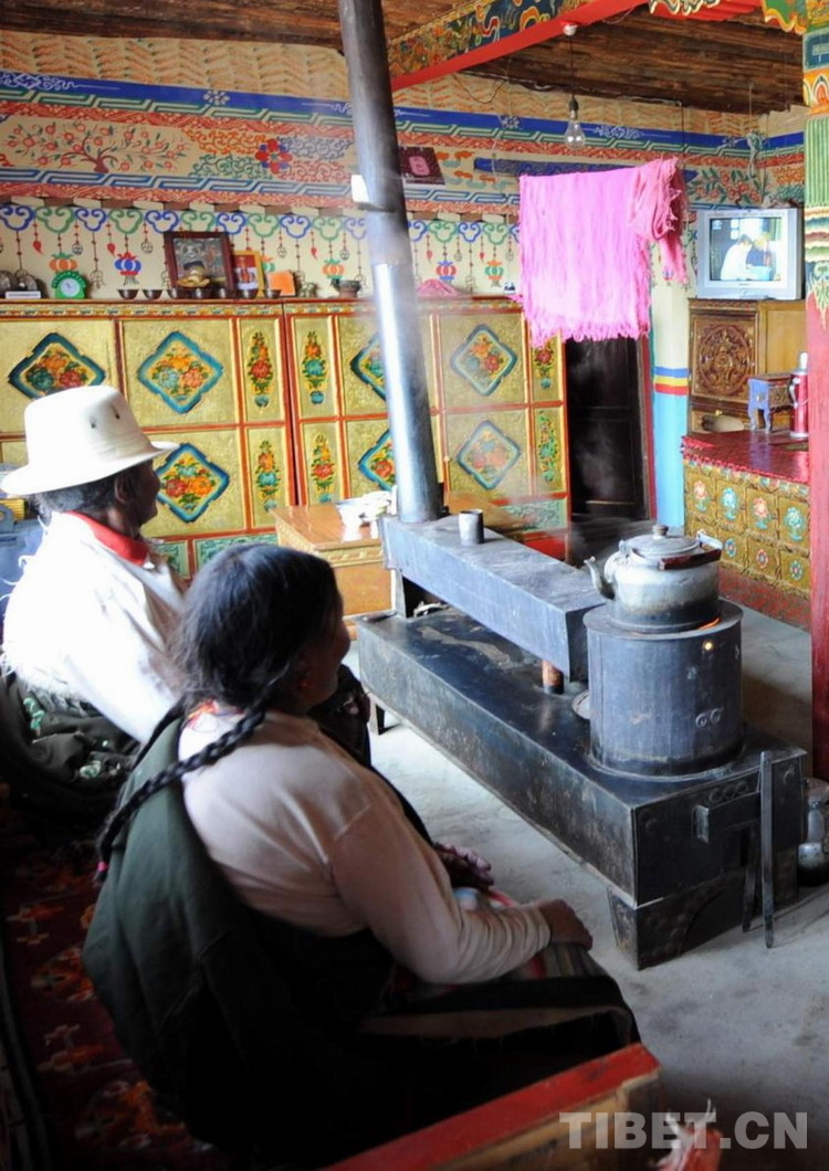 我們來(lái)到二村,時(shí)任村黨支部書(shū)記的桑旦早早地就迎候在村口,給人一種熱情而沉著的印象。他把我們領(lǐng)進(jìn)村文化室,屋里牛糞燒得正旺,暖烘烘的。桌子上擺有二村的特色風(fēng)干牦牛肉,桑旦將熱氣騰騰的酥油茶端來(lái)。我們一邊細(xì)細(xì)品嘗牦牛肉的獨(dú)特風(fēng)味,一邊與桑旦攀談起來(lái)。桑旦話語(yǔ)雖不多,但每說(shuō)一句,總能道出二村昔日的貧窮與今日走上安康生活的感慨。