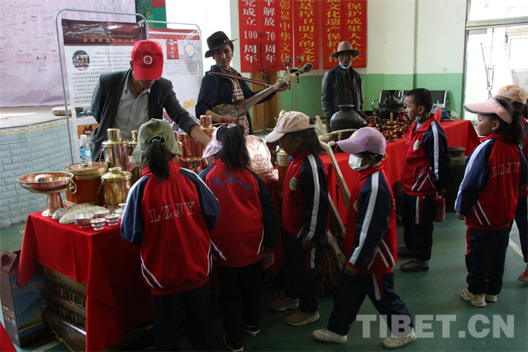圖為拉孜縣完小學(xué)生參觀傳統(tǒng)手工藝產(chǎn)品