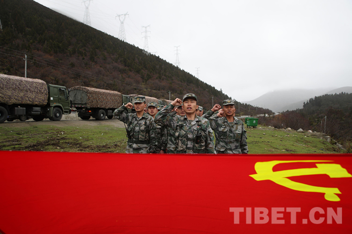中國(guó)西藏網(wǎng)訊 近日,西藏軍區(qū)某運(yùn)輸旅執(zhí)行川藏線(xiàn)方向的運(yùn)輸任務(wù)車(chē)隊(duì),到達(dá)迫龍?zhí)祀U(xiǎn)時(shí),開(kāi)展了“重溫入黨誓詞、爭(zhēng)當(dāng)保障尖兵”活動(dòng)?!拔抑驹讣尤胫袊?guó)共產(chǎn)黨,我宣誓……”鏗鏘有力的誓言在崇山峻嶺中回蕩。