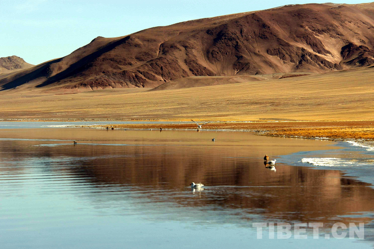 盡管是盛夏時節(jié),風(fēng)過之處仍感覺到肌膚生涼。色林錯湖水中有許多飛禽。我幻想,如果把這個湖搬到盛夏的北京,該讓多少人欣喜若狂??!