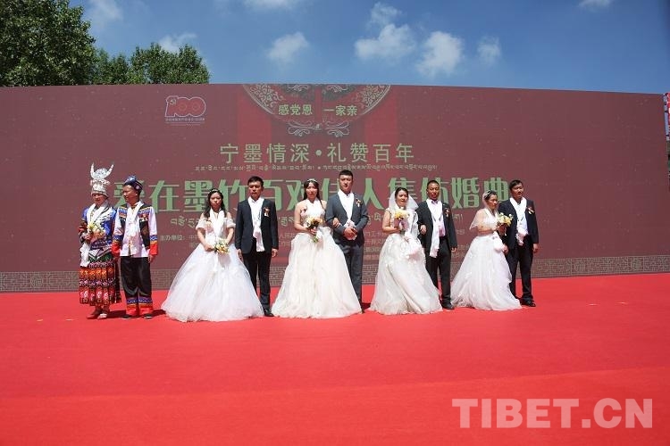 中國(guó)西藏網(wǎng)訊 藍(lán)天為媒、碧水為證,與黨同慶、永結(jié)同心。在中國(guó)共產(chǎn)黨成立100周年來臨之際,6月28日,“寧墨情深·禮贊百年”——愛在墨竹百對(duì)佳人集體婚典在西藏自治區(qū)拉薩市墨竹工卡縣甲瑪鄉(xiāng)松贊干布紀(jì)念館盛大舉行,百對(duì)佳人隆重集會(huì),迎建黨百年、結(jié)百年姻緣。