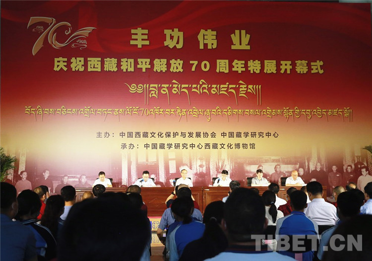中國西藏網(wǎng)訊 2021年6月29日,由中國西藏文化保護與發(fā)展協(xié)會、中國藏學研究中心主辦的“豐功偉業(yè)——慶祝西藏和平解放70周年特展”在中國藏學研究中心西藏文化博物館開幕。中國西藏文化保護與發(fā)展協(xié)會副會長斯塔、中國藏學研究中心黨組書記陳宗榮出席開幕式并致辭。中國藏學研究中心總干事鄭堆主持開幕式。中央宣傳部、中央統(tǒng)戰(zhàn)部相關(guān)同志和有關(guān)專家學者等百余人參加開幕式。