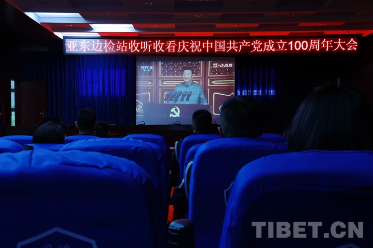 圖為西藏亞?wèn)|出入境邊防檢查站組織民警觀看慶祝中國(guó)共產(chǎn)黨成立100周年大會(huì)