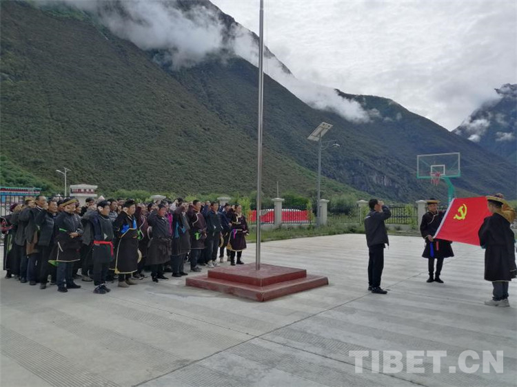 圖為林芝市工布江達縣干部群眾重溫入黨誓詞 攝影:公布