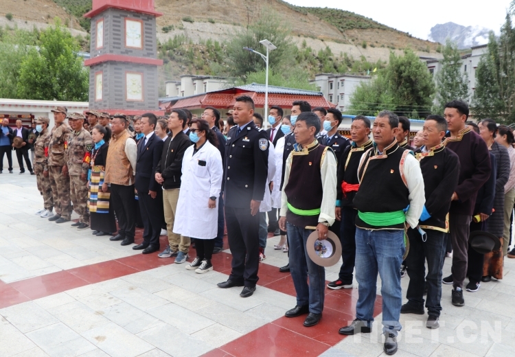 圖為西藏山南白堆鄉(xiāng)干部群眾7月1日共同參加升國旗儀式