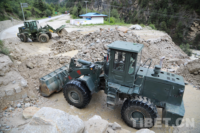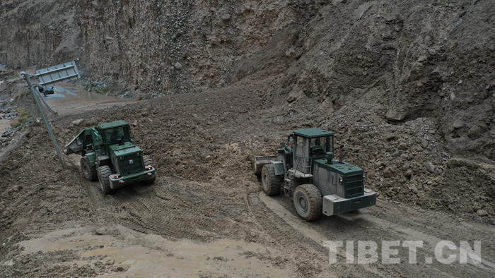 圖為該支隊(duì)救援官兵正在對(duì)川藏線怒江溝泥石流災(zāi)害進(jìn)行搶通