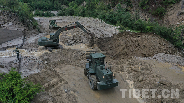 圖為該支隊(duì)救援官兵正在對(duì)川藏線怒江溝泥石流災(zāi)害進(jìn)行清理
