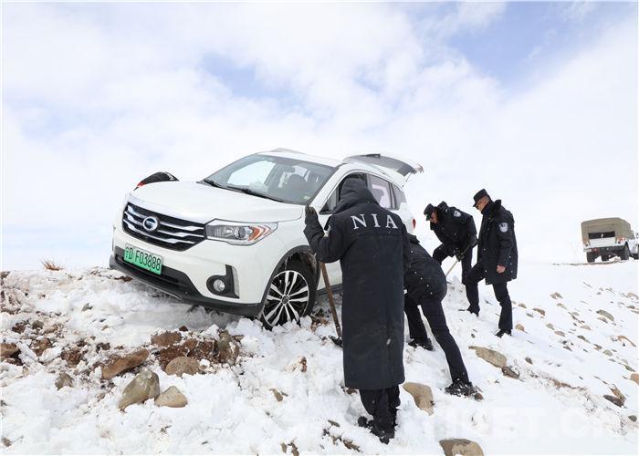 圖為塔爾欽邊境派出所民警救援被困車輛