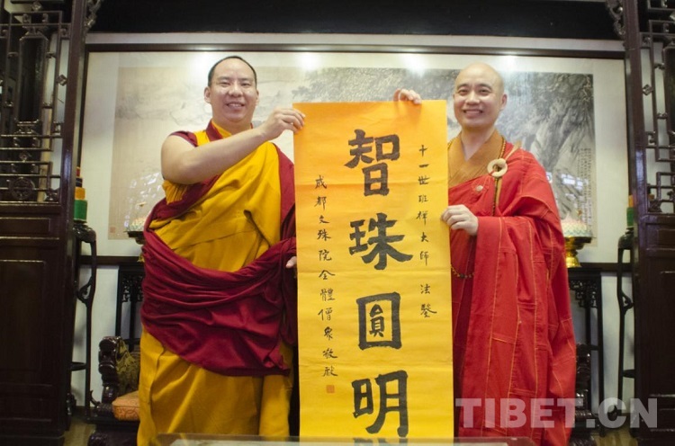 7月12日,班禪時隔十六年后再次來到這座千年古剎并開展佛事活動。全國政協(xié)委員、中國佛教協(xié)會駐會副會長、四川省佛教協(xié)會副會長、成都市佛教協(xié)會會長、文殊院現(xiàn)任方丈宗性陪同。