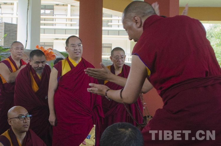 圖為班禪在四川藏語佛學院觀看學員辯經(jīng) 攝影:歐帆