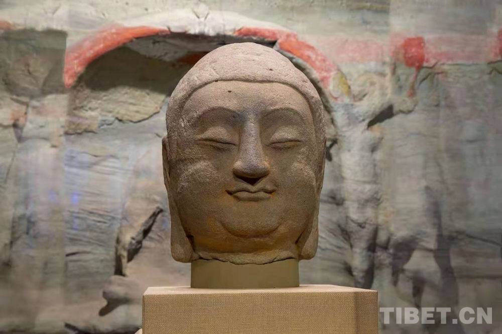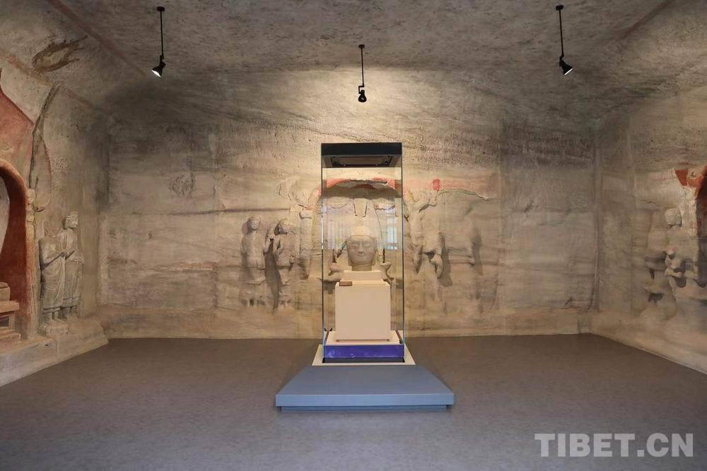 圖為“復興路上 國寶歸來”特展上的山西天龍山石窟“第8窟北壁主尊佛首”