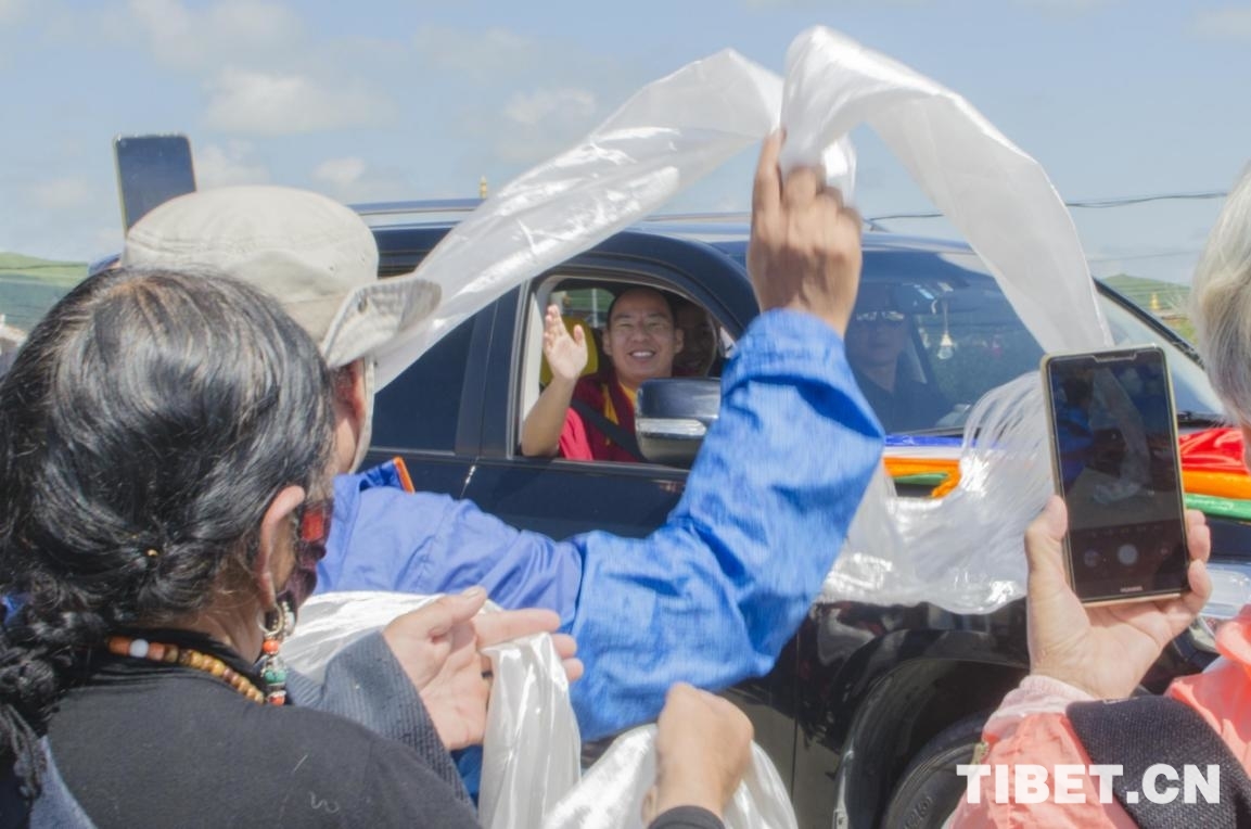 圖為在前往毛爾蓋寺途中,班禪下車向群眾揮手致意 攝影:歐帆