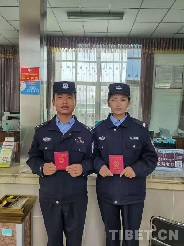 圖為王江鵬和尼瑪普赤領證時的合影