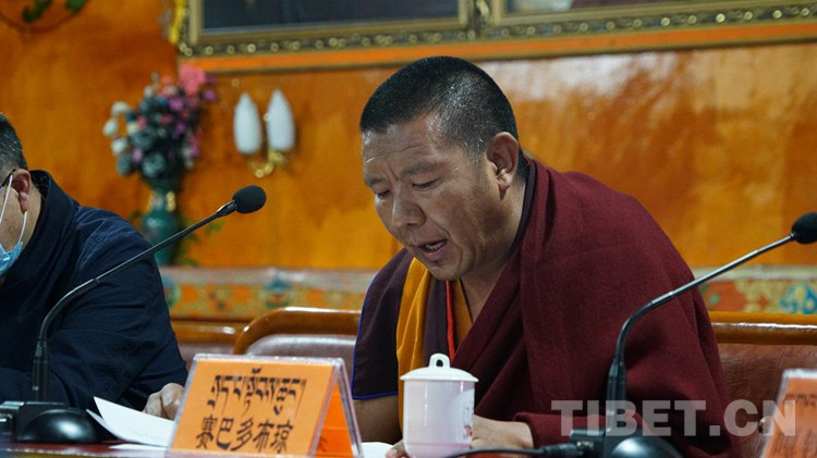 扎寺管委會副主任賽巴·多布瓊、扎寺管委會委員嘎欽尼瑪平措在大會上交流了學(xué)習(xí)體會。他表示,習(xí)近平總書記到西藏慶祝西藏和平解放,這在黨和國家歷史上是第一次,這表明黨中央對西藏工作的支持,對西藏干部群眾的關(guān)懷,總書記到哲蚌寺視察并發(fā)表重要講話,是對西藏宗教工作的充分肯定,更是對我們廣大宗教界的極大鼓勵和鞭策。我們一定要牢記習(xí)近平總書記諄諄教誨,繼承和發(fā)揚扎什倫布寺愛黨、愛國、愛教的優(yōu)良傳統(tǒng),以史為鑒帶頭引導(dǎo)廣大僧眾永遠(yuǎn)感黨恩、聽黨話、跟黨走,堅決劃清與十四世達(dá)賴和達(dá)賴集團的界限,堅定不移維護祖國統(tǒng)一和民族團結(jié),用自己的實際行動自覺踐行“四條標(biāo)準(zhǔn)”。