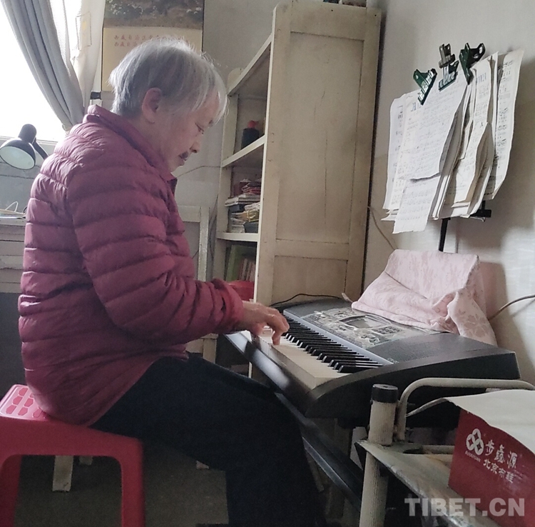 鄧親和,四川省樂(lè)山市犍為縣人,出生于1931年,十八軍52師文工隊(duì)?wèi)?zhàn)士。1950年,鄧親和19歲,正值高三,成績(jī)優(yōu)異的她不顧家人的勸阻,毅然放棄了繼續(xù)讀書的機(jī)會(huì),踏上了解放西藏的征途,從此在雪域高原上留下了人生最寶貴的青春足跡。初見(jiàn)鄧?yán)蠋?,她親切和藹的樣子,給我留下深刻的印象。老人雖然退休多年,但是她的生活仍然格外豐富。據(jù)老人講,她的作息時(shí)間比較規(guī)律,堅(jiān)持做八段錦鍛煉身體,自己做家務(wù),空閑時(shí)間還會(huì)看書看報(bào)、提筆練字,或是彈彈電子琴,唱唱歌等等,生活豐富多彩。此刻,我從她的身上看到了年輕時(shí)鄧親和的神態(tài)與風(fēng)采?;厥啄嵌螎槑V歲月,翻雪山、過(guò)草地、穿峽谷、涉冰河……面臨高山缺氧的生命危險(xiǎn),趟越急流冰河的刺骨鉆心,爬冰臥雪、忍饑耐寒,遇艱險(xiǎn)不畏其險(xiǎn),歷困難不以為難,樁樁件件好似一首首雋永的絢麗詩(shī)篇,常在她記憶里回蕩,令人難忘。