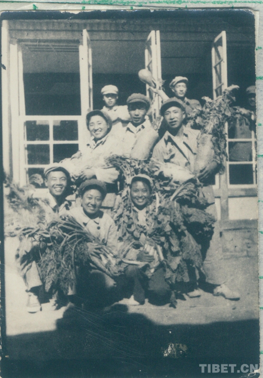入城后,文工隊(duì)分別住在江孜城郊強(qiáng)查洞幾處民房里。初到江孜,后方給養(yǎng)一時(shí)運(yùn)不上來(lái),蔬菜等主副食又得不到有效供給,西藏只有土豆、元根,他們還不能隨便采購(gòu)。西藏工委和十八軍黨委遵照毛主席“進(jìn)軍西藏,不吃地方”的指示,提出“搞好生產(chǎn)是進(jìn)藏部隊(duì)長(zhǎng)期的一項(xiàng)中心任務(wù)”,文工隊(duì)同分工委全體工作人員一道在帕拉開(kāi)墾荒地、播種糧食。天寒地凍又缺少農(nóng)具,用鐵锨鏟鏟不動(dòng),用十字鎬挖,一鎬下去,直冒火星。同志們想方設(shè)法烤凍土,翻起一塊一塊像鐵板一樣的凍土,晾在太陽(yáng)下曬,然后再一鎬一鎬的砸碎、耙平,沒(méi)有耕牛,男同志就扛起繩拉犁,女同志平地耙地。江孜海拔4000米以上,平日里都缺氧,此時(shí)再加上勞累更是頭暈?zāi)X脹,上氣不接下氣,可是他們充分發(fā)揚(yáng)“不怕苦不怕累”的精神,終于開(kāi)出一片荒地、撒下種子、收獲了自己種下的糧食,做到了一部分自給,在西藏群眾中產(chǎn)生了很好的影響。文工隊(duì)還在住地附近開(kāi)辟了一塊地種菜,用實(shí)際行動(dòng)徹底粉碎了西藏上層反動(dòng)集團(tuán)妄圖用糧食困住解放軍進(jìn)而餓走解放軍的美夢(mèng)。