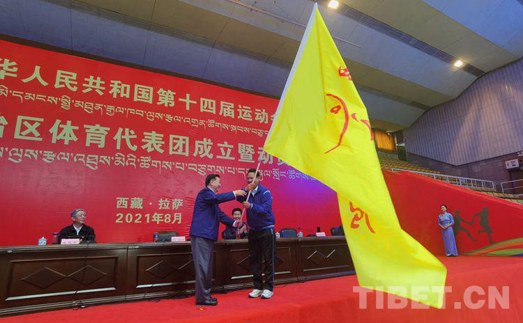 圖為第十四屆全運會西藏自治區(qū)體育代表團成立授旗儀式 攝影:賈華加