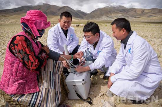 圖為組團(tuán)式醫(yī)療援藏專(zhuān)家在農(nóng)牧區(qū)義診