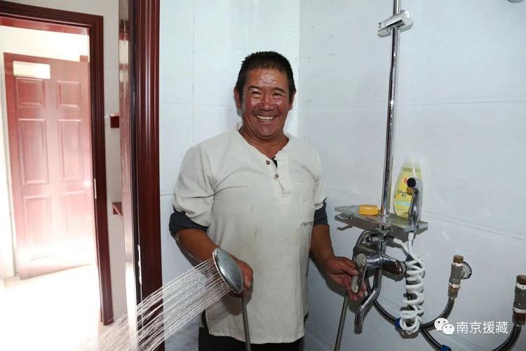 剛從便民公共浴室洗完澡出來的村民旦增洛珠告訴記者,“過去村子里沒有公共浴室,條件也很差,別說村民能洗澡,小孩放學回來洗個澡也是難題,到縣城洗澡交通又太遠。有了便民小浴室,我們洗澡方便了很多,農(nóng)忙期間身體很累自家門口沖個澡特別的舒服,學生放假回來洗個澡也非常方便。”(中國西藏網(wǎng) 記者/王佳豪 圖片均來源于南京援藏微信公眾號)