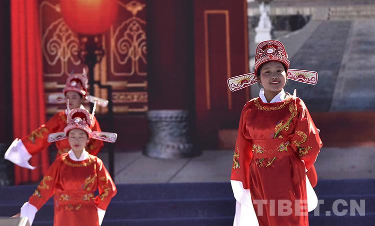 圖為2021雅礱文化旅游節(jié)開(kāi)幕式文藝演出中,山南市第二高級(jí)中學(xué)生們表演黃梅戲《女駙馬》選段 攝影:王媛媛