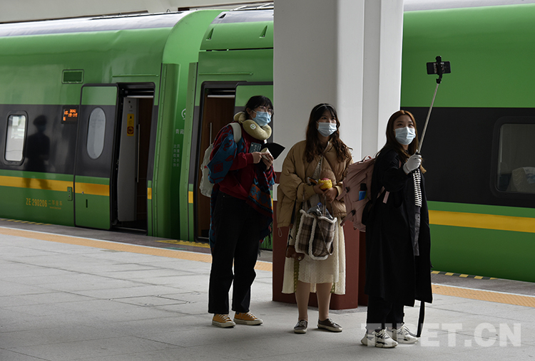 圖為9月25日D8981次動(dòng)車(chē)抵達(dá)林芝,乘客拍照留念 攝影:王媛媛