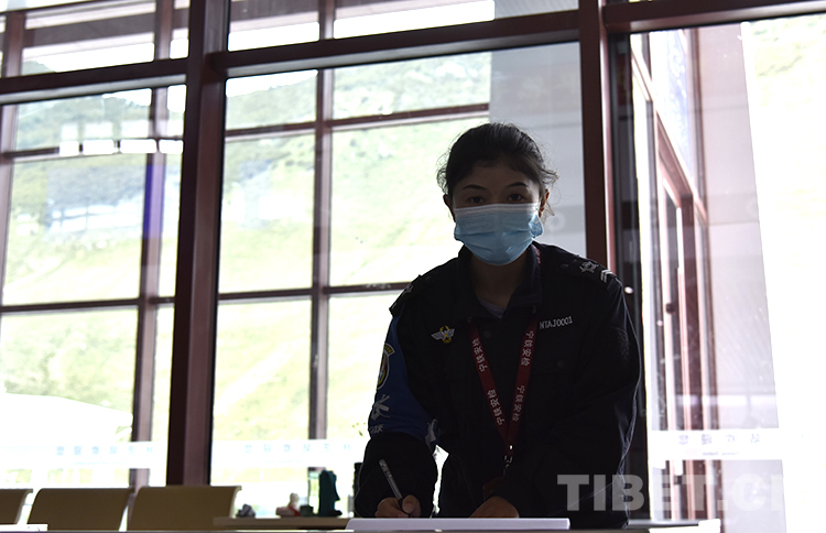 圖為9月25日林芝站,安檢員阿牛在崗位上工作 攝影:王媛媛